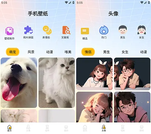龙凤壁纸是专注手机个性化的综合类素材软件,涵盖壁纸、表情包、头像及动态素材,覆盖自然风景、动漫、游戏等多风格,无需专业技能即可完成个性化设置,适配桌面美化、聊天表达等日常场景,满足用户多元个性化需求。