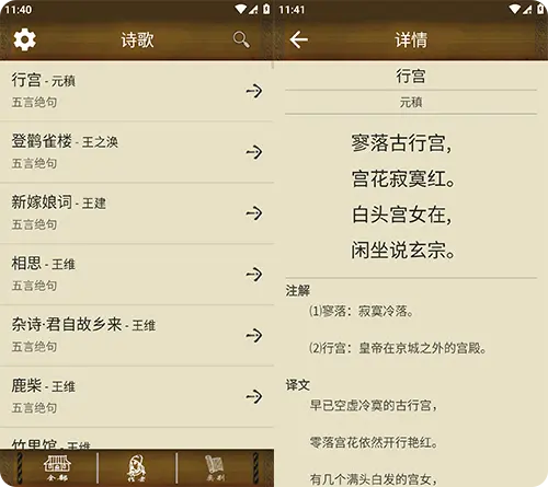 唐诗三百首经典是专注唐诗学习与传统文化传承的软件,以丰富诗词收录与实用学习工具为核心,搭配古风交互体验,适配学生背诵、文化爱好者赏析等场景,无需额外查找资料即可深度感受唐诗魅力。