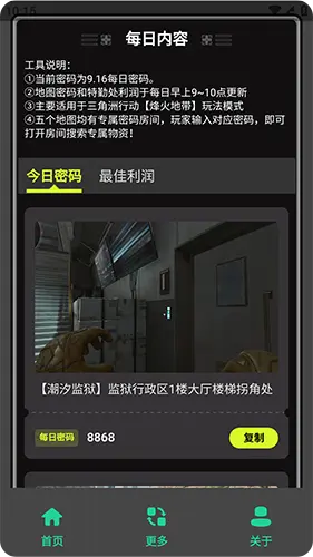 实时更新每日码门密码,确保信息精准有效,避免出现密码失效导致的重复试错问题;界面核心区域突出密码展示,点击即可一键复制,直接粘贴至游戏输入框,避免手动输入密码的失误,适配战斗间隙快速开舱的紧张场景,提升物资获取效率。文章来源:知源网www.zhiyuanpro.com知源网-https://www.zhiyuanpro.com/4292/.html
