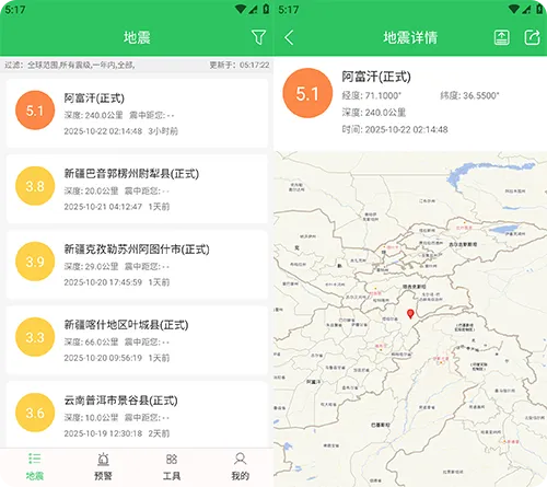 地震预警助手是聚焦地震防灾避险的实用工具,以实时预警、全面地震信息查询为核心,集成应急工具,无需复杂操作即可为用户争取避险时间、辅助灾后自救,适配日常防灾、地震信息追踪等场景,是个人与家庭的防灾帮手。