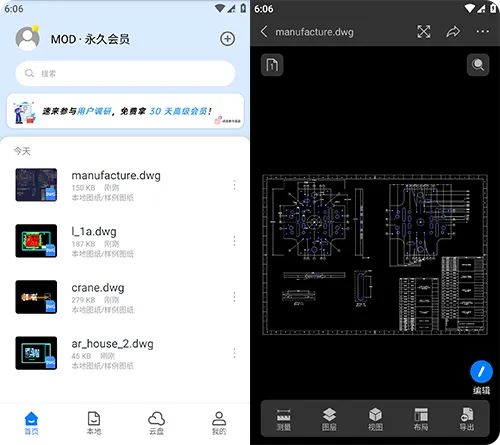 看图大师是广州中望龙腾软件股份有限公司开发的专业CAD看图软件,主打多格式图纸查看与实用辅助功能,支持安卓15系统,无广告且提供5GB免费云盘,适配建筑、工程领域需查看/处理图纸的用户,是兼具专业性与便捷性的CAD工具。
