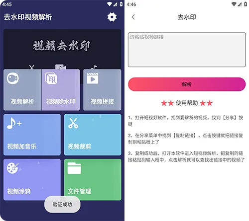 去水印视频解析是安卓端视频处理工具,主打一键去水印、视频编辑与多平台无水印视频解析,无需专业技术即可高效处理视频内容,适配短视频创作者、日常用户等需清理视频水印、制作个性化视频的场景,是实用的视频处理辅助工具。