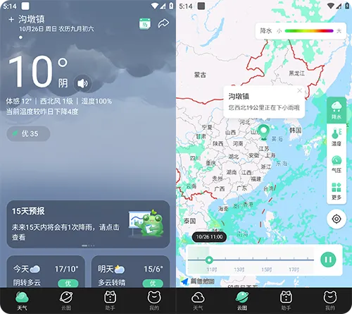 根据天气生成穿搭、通勤、钓鱼等个性化建议,支持潮汐预报;实时监测空气质量并提供15天预报,细分PM2.5等数据;解决天气信息与生活需求脱节的痛点,适配日常穿搭选择、户外钓鱼规划、健康防护等场景,让气象数据服务生活细节。文章来源:知源网www.zhiyuanpro.com知源网-https://www.zhiyuanpro.com/4469/.html