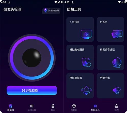 一款针孔摄像头检测App,安全入住,安心保障! 提供检测酒店房间内是否有隐藏摄像头的工具,保障你的入住安全和隐。