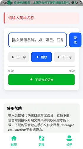 一款王者语音盒App,游戏语音,乐趣翻倍!提供王者荣耀游戏语音包、语音分享、语音设置等功能,让你在游戏中享受更多乐趣,与队沟通更便捷。界面简洁,作便捷,是你的王者荣耀玩家好帮手!