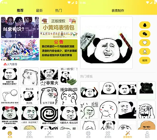 表情包大全是一款集资源获取、创意制作、快捷分享于一体的免费表情工具。内置海量热门表情包及实用制作功能,无需复杂操作,既能满足日常斗图需求,也能轻松打造专属表情,是社交互动的趣味助手。