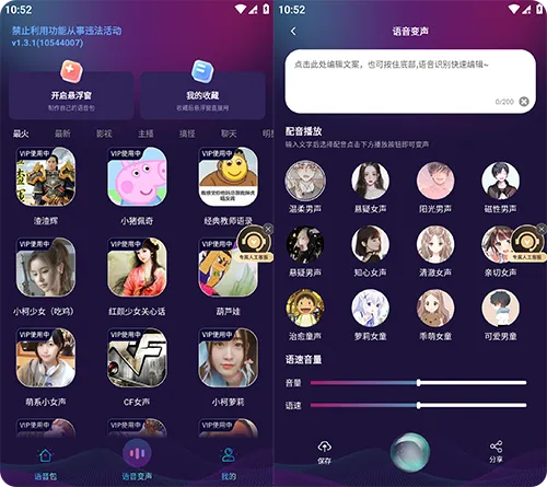 涵盖丰富变声音效,除基础人声外,还有机器人、外星人、小黄人等搞怪音效,以及山谷回音、空灵音效等场景化音效。内置海量真人语音包,涵盖游戏热梗、搞笑台词,支持一键发送,无需手动录制,轻松带动开黑氛围。文章来源:知源网www.zhiyuanpro.com知源网-https://www.zhiyuanpro.com/4810/.html