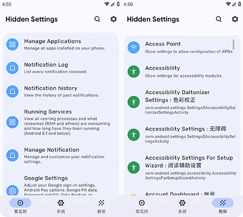 Hidden Settings是一款功能强大的安卓隐藏设置启动器,操作门槛低,能帮助用户深度探索手机系统。它不仅可直接搜索隐藏设置项,一键Root后还会自动装载防火墙等安全模块,兼顾功能深度与使用便捷性,适配普通用户与进阶玩家的多样化需求。