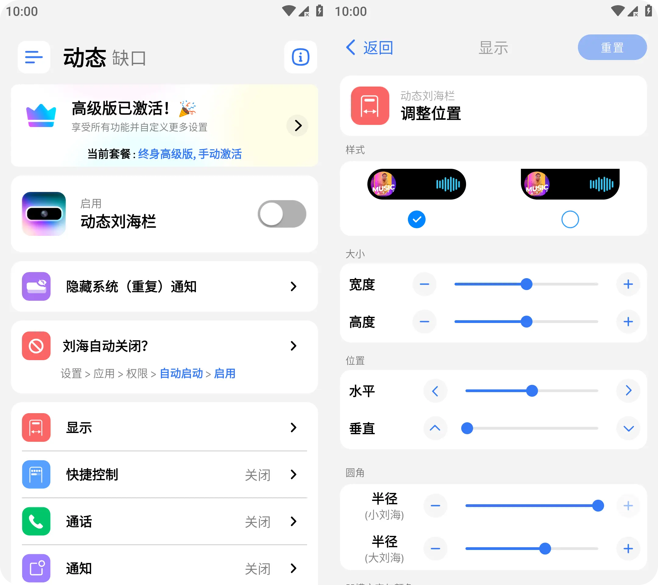 支持高度自定义设置,用户可自由调整灵动岛的大小、位置、圆角弧度、背景颜色及透明度,灵活适配不同安卓机型的挖孔设计,满足个人审美偏好,打造专属美化效果。文章来源:知源网www.zhiyuanpro.com知源网-https://www.zhiyuanpro.com/4905/.html