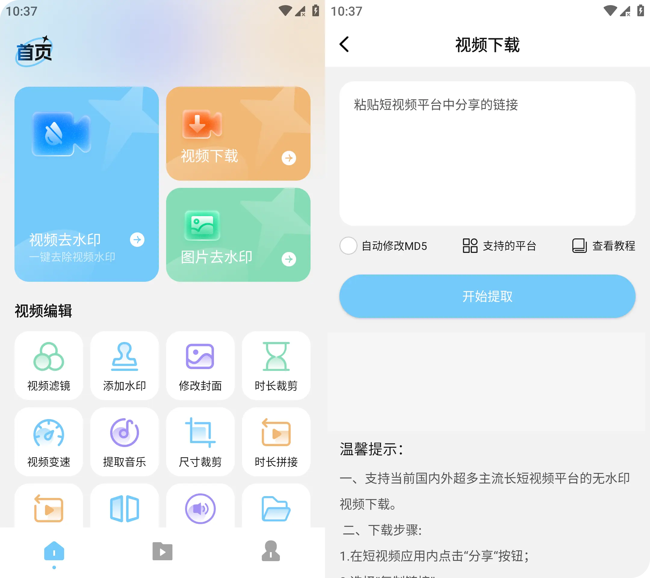 短视频去水印无痕是一款功能全面、操作简便的音视频处理工具,专注于帮助用户高效去除视频和图片中的水印,同时支持多种创意编辑功能,适用于短视频创作者、自媒体运营者及日常用户,轻松满足各类音视频处理需求。