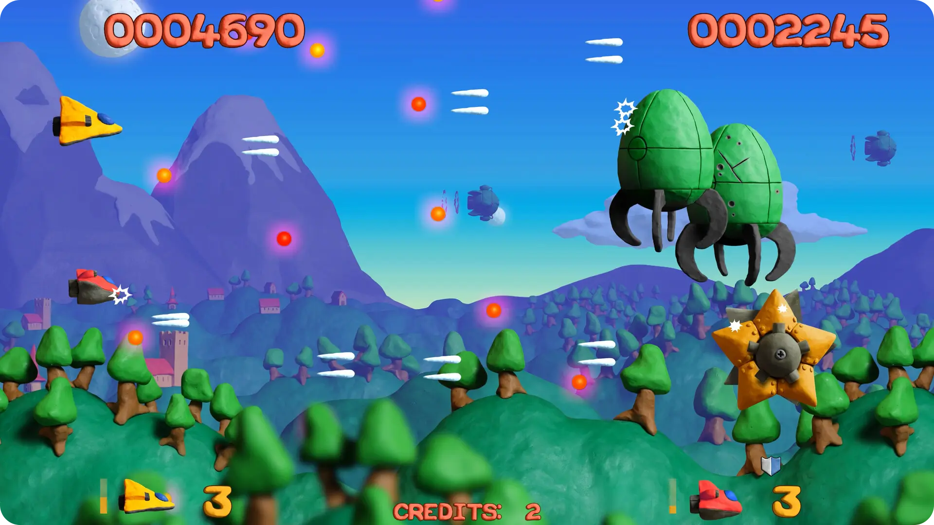 粘土战机:重塑版重磅回归,在原作经典街机射击玩法基础上全面革新,带来更震撼的视觉与操作体验。游戏设定在一个由手工黏土构建的童话宇宙中,超级都市科洛萨特罗波利斯因资源枯竭,入侵邻国蒙戈拉,玩家将驾驶黏土战机,在横版射击战场上抵御入侵、守护家园,兼具复古街机爽感与现代游戏质感。
