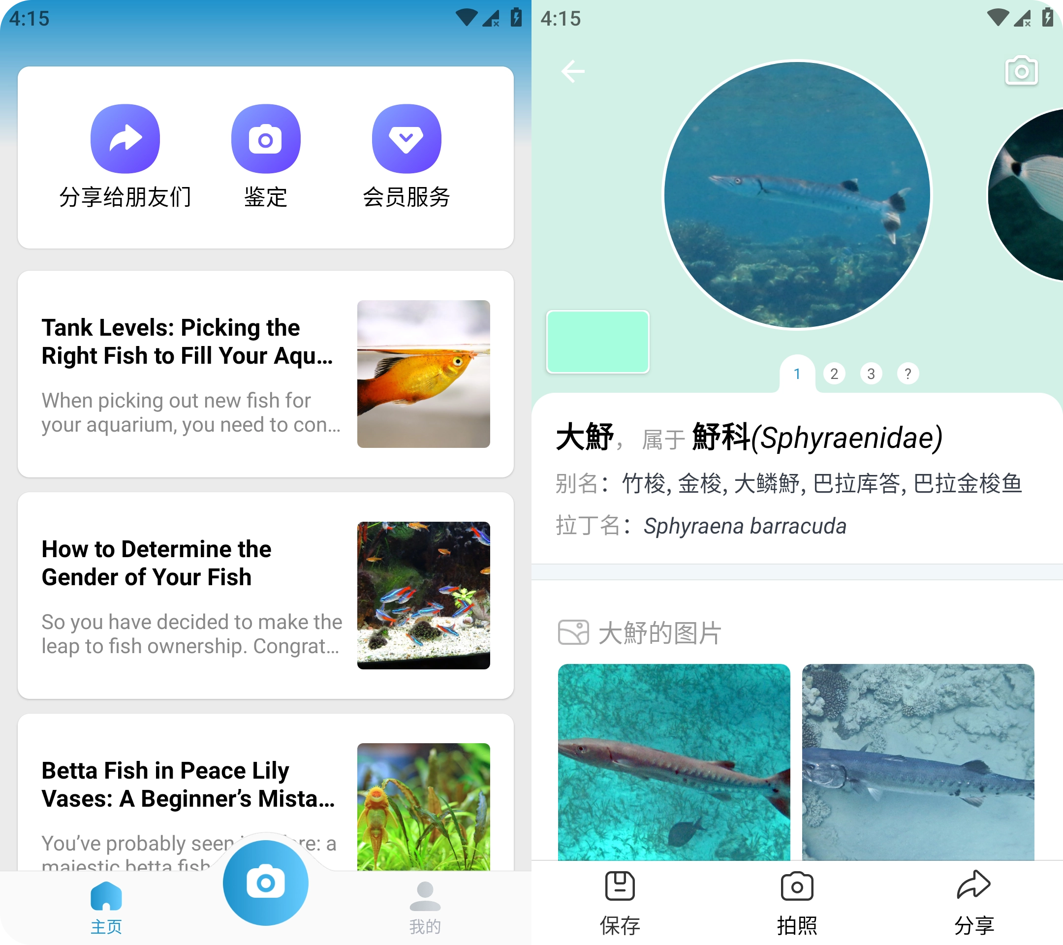 拍照识鱼是一款基于人工智能技术的智能鱼类识别工具,只需拍摄或上传鱼的照片,即可快速识别种类,并获取详尽的生物学信息与养殖建议,适合钓鱼爱好者、水族玩家、海洋生物研究者及自然教育者使用,助力轻松认识水生生物。
